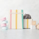 Um padrão uniforme com faixas leves em forma de onda em uma paleta colorida de vermelho, amarelo, chato e rosa inspirada na safra em um fundo creme. As linhas suaves criam um design lúdico e ritmado que evoca uma sensação de nostalgia. As cores retrorativas deste padrão adicionam uma vibração brilhante e alegre.