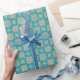 Adicione um toque de charme de inverno feito à mão às suas férias com este elegante design de padrão de flocos de neve. Com quatro flocos de neve únicos e desenhados à mão em fundos de palha macia e turquesa, este design é perfeito para as suas necessidades de embrulho de férias.