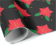 Papel De Presente Padrão de Flor de Natal Vermelho em Preto