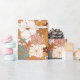 Enrole seus presentes em estilo com esse papel de embrulhamento de padrão floral de bolos 70s. Perfeito por adicionar um toque retrô a qualquer presente, este design vibrante fará seus presentes se destacarem.