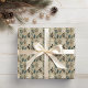 Papel moderno de embalagem de presentes de férias com um padrão de folhagem em florestas em tons sutis e sutis de verde.
