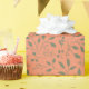 Papel de presente com padrão moderno de folhas da floresta em taupe sobre fundo salmão