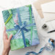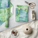 Papel de embrulho de folha de banana da selva aquosa, em acentos de verde e azul.