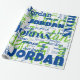 Papel De Presente Padrão de Fonte Verde Azul do Nome de Repetição Mo