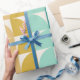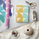 Este papel de empacotamento bonito apresenta um padrão simples de formas geométricas em uma paleta colorida do arco-íris pastel.