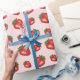 Papel De Presente Padrão de Frutas Morango Vermelho Sobre Rosa
