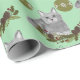 Papel De Presente Padrão de Gato de cinza com ornamentos Verdes