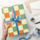 Papel De Presente Padrão de Gingham - Laranja Verde Marrom