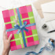 Papel De Presente Padrão de Gingham Rosa e Verde