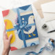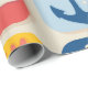 Um padrão de grade lúdico com ícones náuticos encantadores, incluindo âncoras, gaivotas, baleias, caranguejos e boias salva-vidas. Os blocos coloridos de vermelho, amarelo e azul criam um tema marítimo vivo e vibrante.