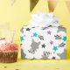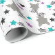Este papel de embrulho bonito é versátil e pode ser usado para dar presentes ou projetos de arte e artesanato. A design apresenta guaxinins e estrelas em um fundo branco. Isto é perfeito para aniversários.