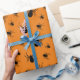 Papel De Presente Padrão de Halloween de aranhas Preto e Laranja