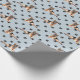 Uma imagem de um Cachorro German shepherd é a característica do padrão neste papel de embalagem de presente, em todas as ocasiões. O cachorro veste uma gravata azul de arco em meio a um padrão de estampas pretas, e é repetido em um fundo azul-prateado.