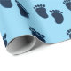 Pegadas do menino. Ideia de decoração de festas personalizadas. Rolos de papel de embrulho de presente personalizados.