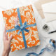 Papel De Presente Padrão De Laranja De Halloween E Damascos Florais