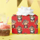 Padrão de repetição contínuo de pequenos macacos fofos em fundo vermelho