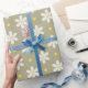 Papel De Presente Padrão de Margaridas Brancas com Fundo Personaliza
