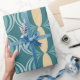 Um padrão de arte abstrato de inspiração no 20, inspirado no século médio, com formas de melão em tons de lacre e turquesa.