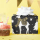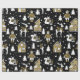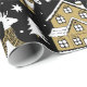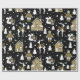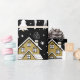Ilustração de Natal em preto, branco e dourado com renas, árvores de Natal e ursos em suéteres bonitos
