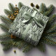 Se você está se perguntando que combinações de cores escolher para sua decoração de Natal e presentes este ano, eu criei coleções de padrões coordenadores para tornar a vida um pouco mais fácil. Este padrão monocromático de papel embrulhado de árvores de Natal estilizadas é mostrado aqui numa paleta colorida que vai do verde-musgo profundo ao branco. Foi fornecido um modelo para adicionar o seu nome. Procure ID1009 para ver outros produtos e padrões neste esquema de cores.