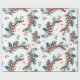 Um padrão floral festivo para as férias, este design espalhou galhos sagrados em tons de aquarela de verde, azul-esverdeado e chalé com morangos vermelhos. O esquema de cores tem um aspecto tradicional com estilo contemporâneo. Imaginem o quão adoráveis os vossos pacotes estarão embrulhados e prontos para a doação de presente de Natal.