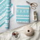 Papel de embrulho ciano moderno com padrões de Natal brancos.