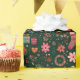 Um adorável design de padrão de natal para empacotar papel com presentes embrulhados, meias de natal e flores florais de inverno em fundo verde escuro. Uma design adorável para embrulhar todos os presentes de Natal para o feriado.