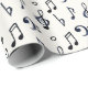 Papel embrulhando com um design musical temido. Um padrão com clave trivial, clave de baixo e outros símbolos musicais.