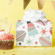 Um papel de embrulho de férias com estilo retro-chic, este design apresenta um padrão de árvores de Natal, ornamentos e flocos de neve do estilo 1940 e 50, espalhados aleatoriamente pelo papel. O esquema de cores moderno do século médio inclui coral, verde-sábio, verde-claro, preto-escuro e rosa-moderado e é adequado para todas as idades. Outros itens correspondentes estão disponíveis neste estilo de design para coordenar sua aparência de feriado.