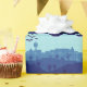 Uma paisagem de arte pixel retrô com campos em camadas e árvores estilizadas