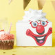 Um desenho animado fofo e engraçado (ou assustador e assustador!) Pintou o rosto do palhaço com um nariz vermelho.