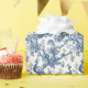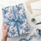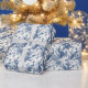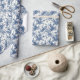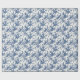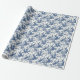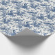 Bonito papel de embrulho do Toile francês, azul e branco, apresenta pavões em galhos, adicionando um toque de elegância vintage a qualquer presente.