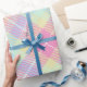 PAPEL DE PRESENTE PADRÃO DE PINK PASTEL E XADREZ AMARELO