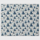 Padrões vibrantes de árvores de Natal azuis escuras e delicados sotaques brancos criam uma atmosfera festiva, perfeita para embrulhar presentes de férias e celebrar a beleza do inverno durante a temporada.
