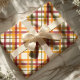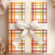 Embale a beleza do outono com este padrão de xadrez do outono com listras de aquarela. A design apresenta uma mistura harmoniosa de laranjas quentes, verdes terrenos, vermelhos ricos e amarelos suaves, arranjada num esquema clássico de xadrez. Perfeito para embrulhar presentes ou adicionar um toque sazonal à sua decoração, este padrão captura a essência do outono com o seu aspecto aconchegante e elegante.