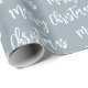 Papel De Presente Padrão de Script Elegante Azul Feliz de Natal