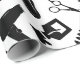 Legal papel de embrulho com um padrão preto e branco das silhuetas de diferentes ferramentas de cabeleireiro, como tesouras, pentes, secadores de cabelo, etc.