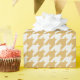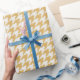 Papel de embrulho com padrão de tecido xadrez amarelo e branco.