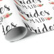 Papel De Presente Padrão de Texto Moderno Preto e Flores de Bridesma