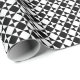 Padrão de mosaico clássico preto-e-abstrato branco retróquico moderno e retróquico contemporâneo. design de hipster, divertida, moderna e caprichosa para o divisor de tendências artístico ou artístico-quadril, retrovisor, estilo nouveau deco art ou amante digital geométrico abstrato gráfico. Design único, bonito, decorativo, moda e moda para embrulhar aqueles presentes de aniversário, surpresa ou Natal divertidos. Disponível em produtos como papel de embalagem e de tecido, etiquetas para presentes, bolsas e caixas de favores, adesivos e fitas.