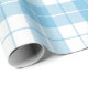 Papel de embalagem concebido com um padrão de xadrez azul claro e branco, de grande dimensão. Personalize o fundo branco entre outras opções.