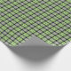 Embalagem para presentes com uma xadrez verde-clara e cinza, com realces em preto e branco. Um padrão de tartan original de Plaidwerx.