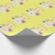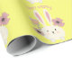 Papel de embrulho de felz pascoa com coelho de páscoa giro e padrão de flores em fundo amarelo.