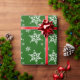 Um padrão bonito, divertido e adorável com flocos de neve brancos em fundo verde. Presente moderno e moderno, perfeito para o amante da neve em sua vida.