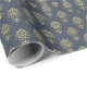 Papel De Presente Padrão do vetor Dourado do Damasco Azul de luxo