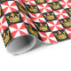 Papel De Presente Padrão Dourado da Coroa Vermelha Medieval