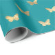 Este papel de embrulho apresenta um elegante padrão de borboleta de folha de ouro falso sobre fundo lacado.