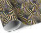 Com um padrão deco de arte dourada clássico e sofisticado em um fundo preto.