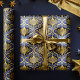 Se você está se perguntando que combinações de cores escolher para sua decoração de Natal e presentes este ano, eu criei coleções de padrões coordenadores para tornar a vida um pouco mais fácil. Essa elegante design geométrica, no estilo barroco ornamentado, é mostrada aqui em uma paleta de cores azuis e douradas marcantes. Procure ID1009 para ver outros produtos e padrões neste esquema de cores.