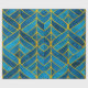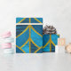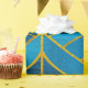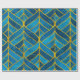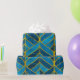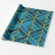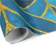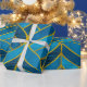 Papel De Presente Padrão Dourado e azul sobre fundo verde, costura
